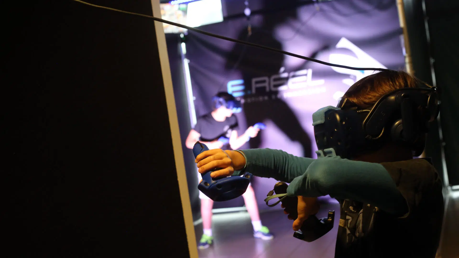 Tout d’abord, côté équipement, pas de gilet électronique, mais un casque de jeu VR HTC Vive, une manette, un contrôleur, des caméras, un écran LCD haute résolution. Le summum du high tech… un matériel dernière génération.